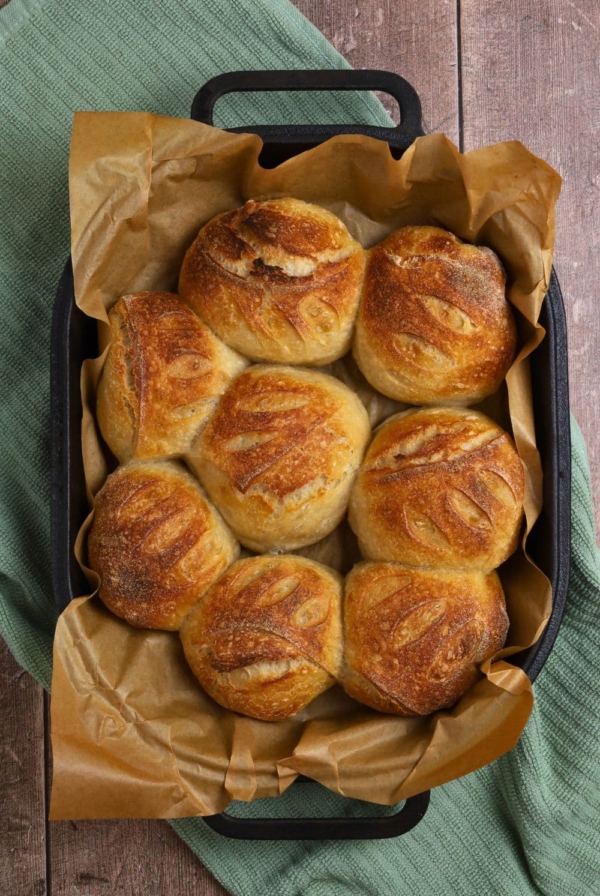 Making sourdough loaves is super satisfying, and this archive is packed with recipes and tips to help you succeed! I have recipes to help you create a basic loaf of sourdough, brioche buns, rolls, naan, and bagels! You'll find the recipes for all of these sourdough breads (and more!) below. Start by baking a loaf of delicious farmhouse white sandwich bread to create the ultimate Sourdough Grilled Cheese Sandwich! For a fantastic breakfast, make my recipe for Cinnamon Raisin Sourdough Bagels.