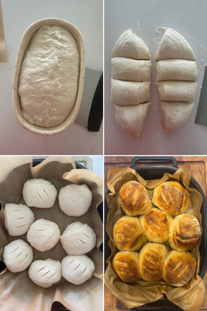 Why? Because sometimes life happens. Maybe you’ve got a batard in the fridge but you want to make sourdough garlic bread and need smaller baguette style loafs. Or maybe you’ve got a boule in the fridge but you now you need some dinner rolls for an impromptu dinner with friends. I want to show you what’s possible!