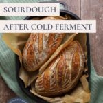 - All of the dough has been cold fermented for a minimum of 24 hours, so it’s well and truly settled into it’s shape in the banneton. You can see evidence of the long cold fermentation in the amount of sourdough blisters on the crusts.