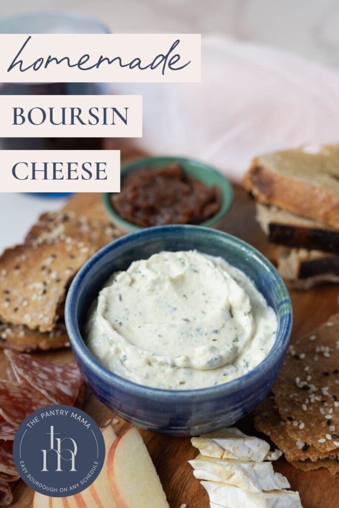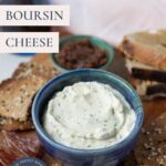 - If you want to mimic the shape of a store-bought Boursin, you can line a ramekin or 1-cup measure with plastic wrap, then press the finished cheese into the container. Refrigerate for an hour or so, then turn it out onto a plate and it looks just like the real thing. I just put it in a bowl though, so you can easily scoop it and eat it right away!