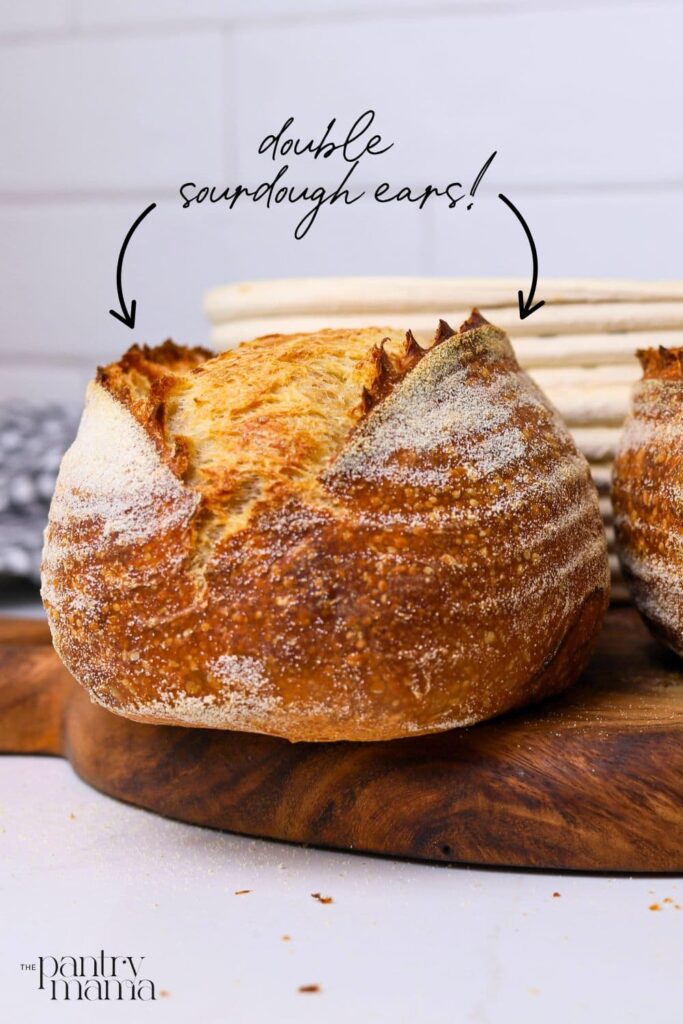 Sourdough ears can be quite divisive – some people love them, others believe it makes the bread harder to slice. Bakers strive for a sourdough ear because it is the culmination of getting many factors “correct” – great oven spring, perfect scoring, the right amount of steam. The ear becomes a sort of sourdough milestone to demonstrate great sourdough baking techniques.