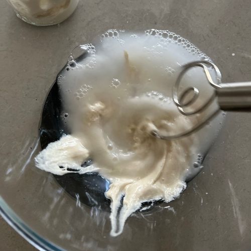 - Measure out the sourdough starter, water and honey (and yeast if you want to add it). Stir together until the sourdough starter and honey are dissolved into the water.