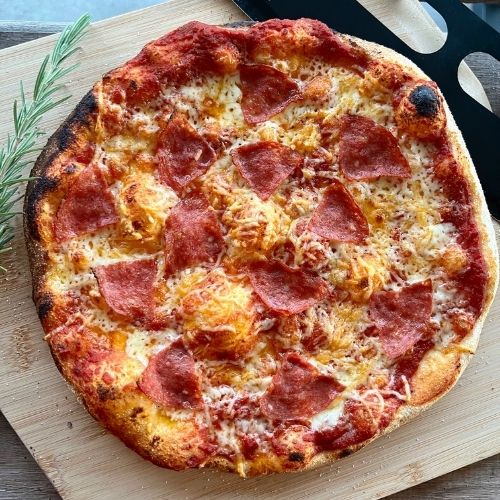 If you do want to invest in a gas fuelled pizza oven, I recommend this one. It’s the most similar to what I have at home. I also recommend getting yourself a few accessories to make life easier. I use a perforated pizza peel and a pizza turner.