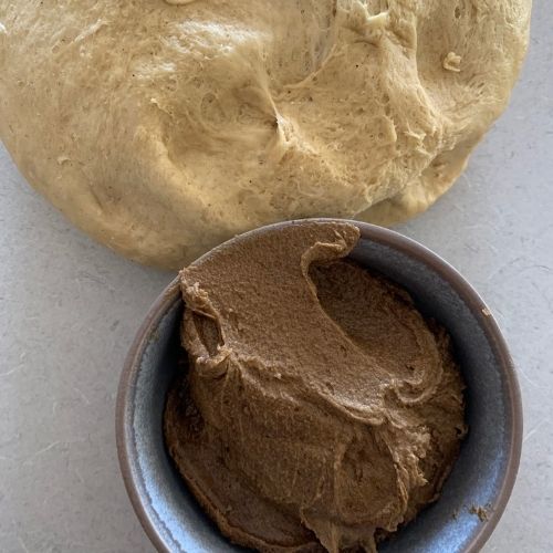 - Before you roll out the dough you need to make the filling. Add brown sugar, molasses, spices and butter to a stand mixer and mix until it is thick and creamy. Set aside while you roll your dough.