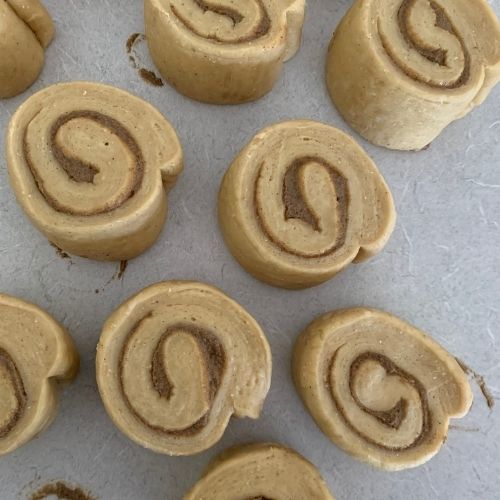 - Roll into a log and cut into 12 rolls.