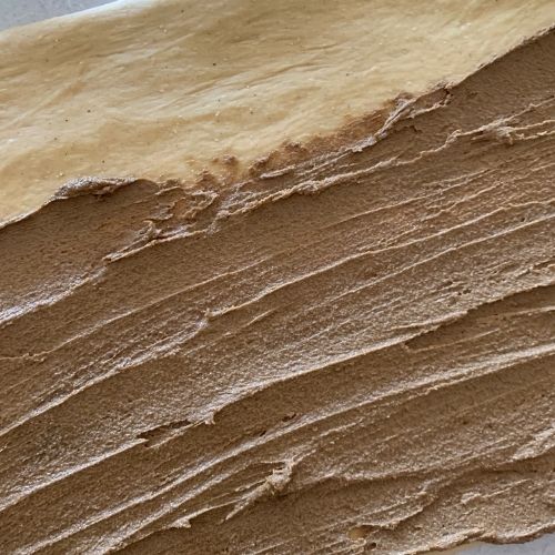 - When the dough is ready, roll it out into a rectangle and spread with the spicy brown sugar butter filling.