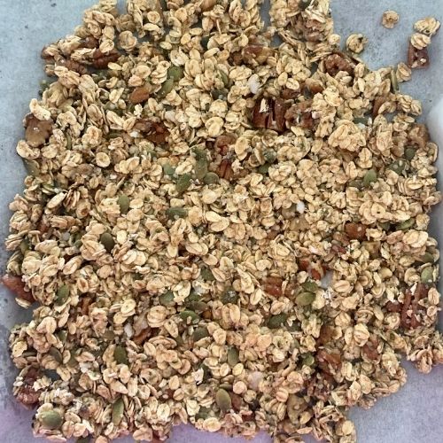 I have made this many times and we love it! I add extra maple syrup and double the cinnamon but everything else is exactly. My husband loves it and that says a lot. He is a big ultra processed food guy so I like to make things homemade. I am currently cooking a triple batch of this as my 3 yr old son adores it too. Cooking time takes at least 10 mins longer, we don’t press it together bc we’ll crumble it anyway and that helps it cook faster, and be careful the seasonings such as cinnamon and nutmeg don’t change in the recipe if you 2x or 3x it but the oats and nuts part do change. Anyway this is a keeper recipe love love.