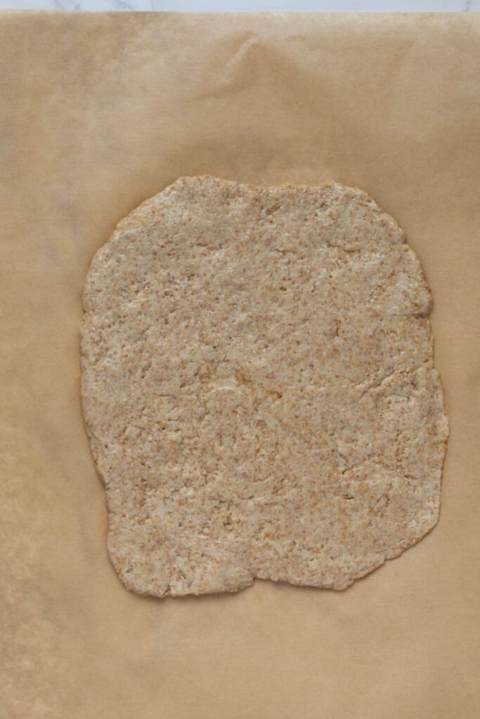 Tip the dough onto a lightly floured surface and roll out wafer thin. Parchment paper is also helpful here because you can then lift the cracker dough straight onto a baking sheet.