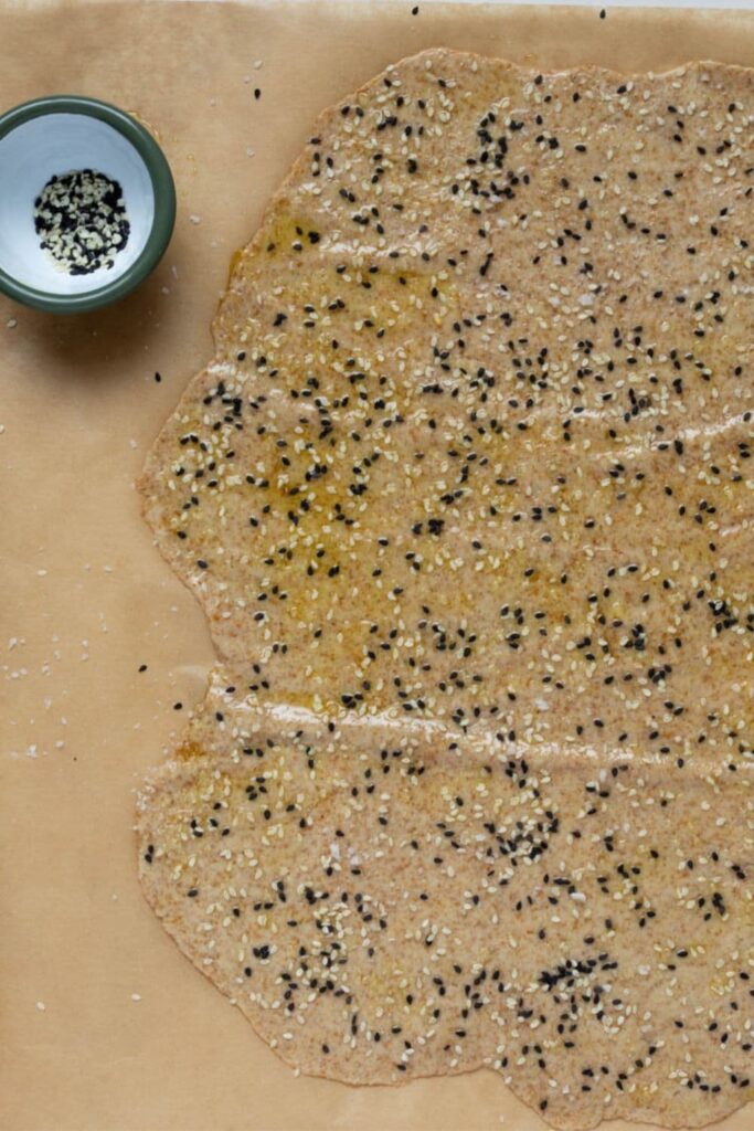 Making sourdough lavosh could not be easier! In fact, it’s a great recipe to get the kids involved in (especially if they love to roll and sprinkle). Mine love to snack on these whenever we make them, even with the seeds!