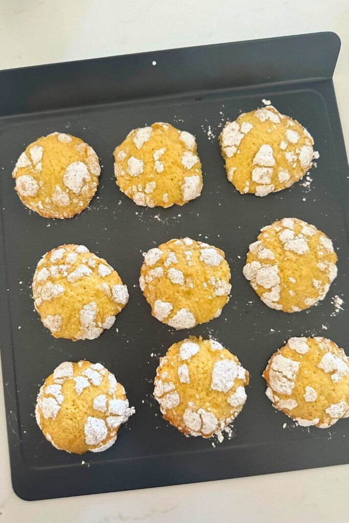 Double Sugar – before baking, roll the cookie dough balls generously in granulated sugar and then in powdered sugar. The sugar coating not only adds a sweet touch but also creates a textured surface that crinkles as the cookies expand during baking. Use twice as much powdered sugar as you think you need!