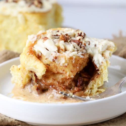 Freeze – Once baked and cooled, place the rolls in an airtight container or wrap them well in foil and freeze for up to 3 months. Thaw at room temperature and warm before serving. The maple glaze and pecans hold up beautifully after freezing, so you can still enjoy that delicious texture even after storing.