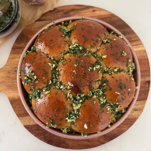 This sourdough pampushky or Ukrainian Garlic Bread is about to change the way you eat garlic bread forever. Soft, pillowy pull apart rolls topped with most amazing fresh parsley and garlic oil. It’s sourdough bread – but not as you know it – let’s call them sourdough garlic buns!