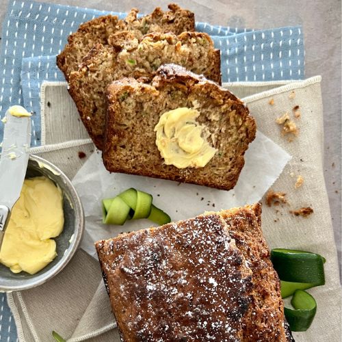 Some ideas for serving your sourdough zucchini bread. I recommend allowing the bread to cool quite a bit as it can be too crumbly when sliced warm. Once cool, serve with:
