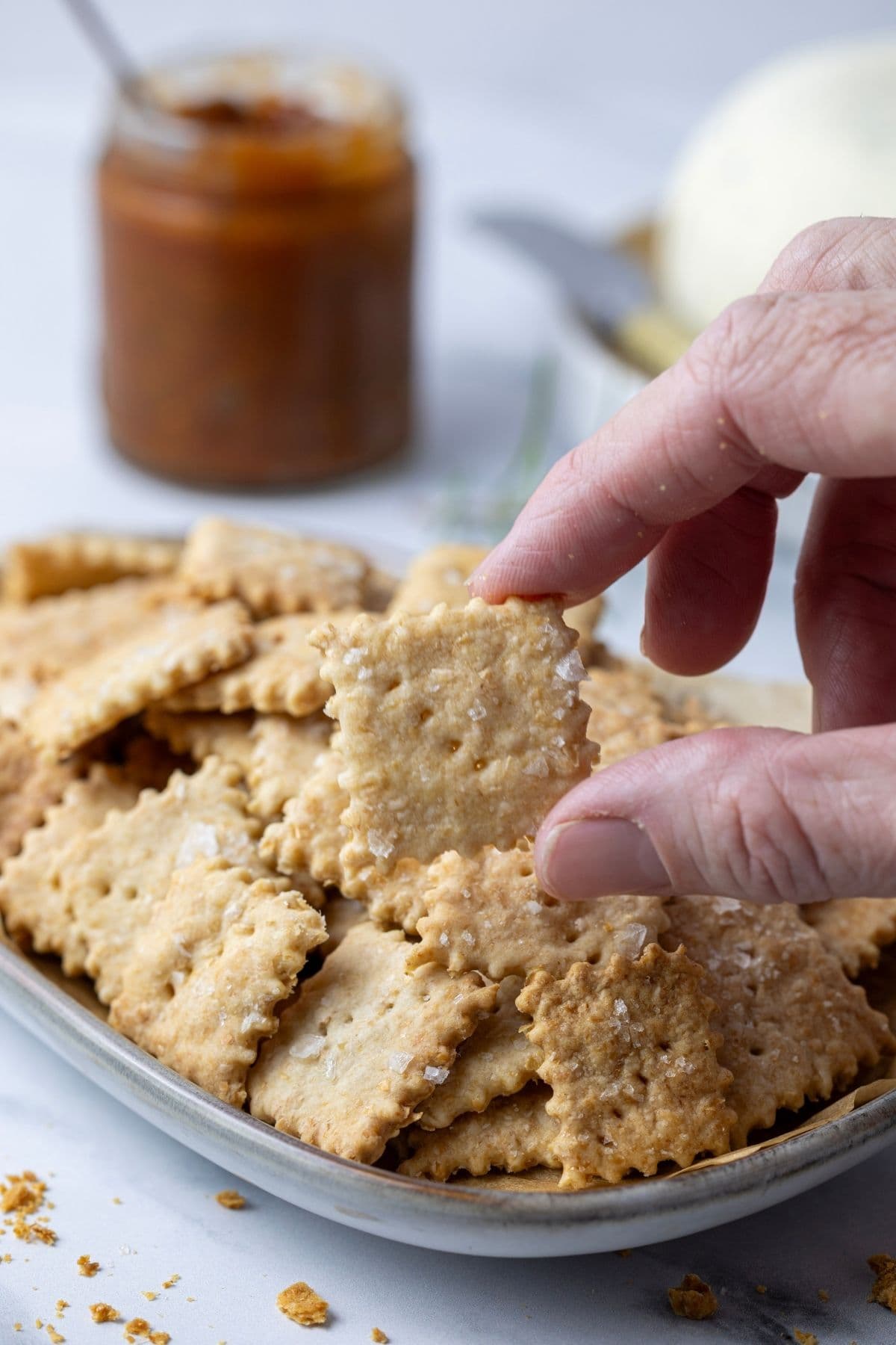 - Salt – you’ll need salt to add to the dough, as well as some nice flaky sea salt for sprinkling on top of your crackers.