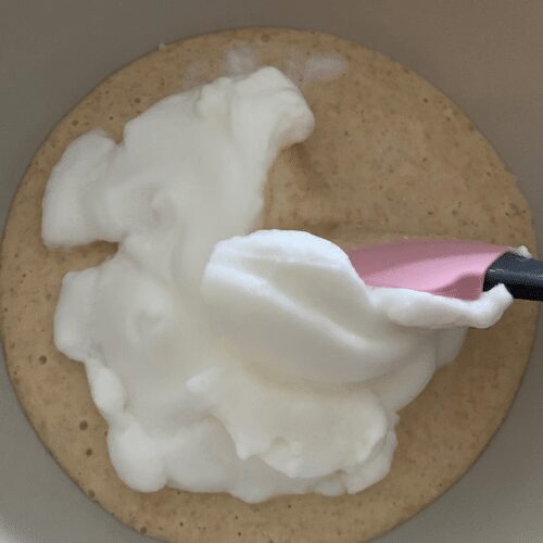 - Using a spatula, fold the egg whites through the pancake batter.