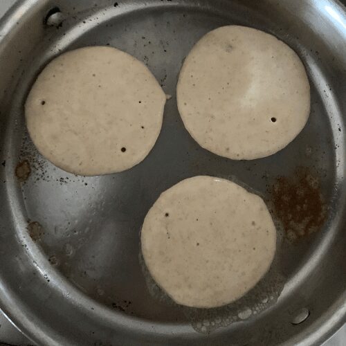 - Fry large spoonfuls of mixture until bubbles form, then flip them over and cook the other side until golden brown.