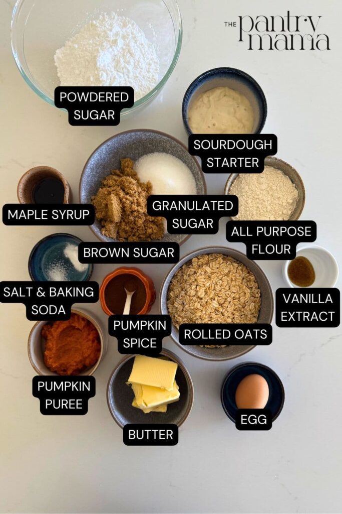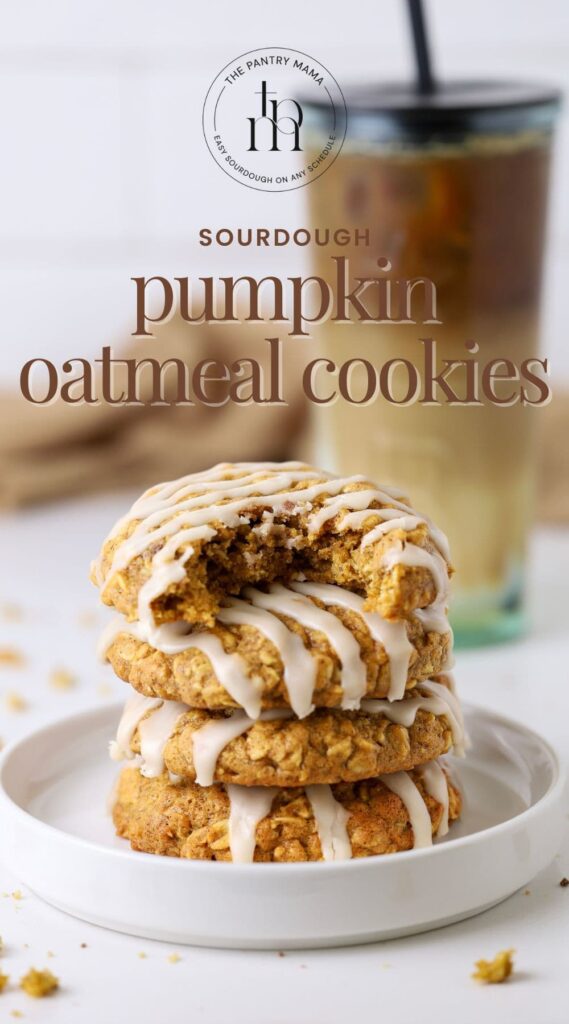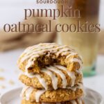 These cookies are such a fun fall twist to my sourdough oatmeal chocolate chip cookies. I’ve swapped the chocolate for pumpkin and cozy spices, and the result is a soft, chewy cookie that tastes just like autumn.